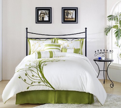 I love my comforter! (make sure you aren't getting a duvet with this seller because they have both comforters and duvets) It is in amazing condition and is perfect! It's bright white. The only thing is that you can't see that the tree fades in the picture. It fades from darkish green to a tan-green color. I am not doing it justice -- it is gorgeous. Its really nice quality and looks beautiful. I would definitely recommend this bed-in-a-bag set!
