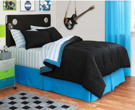Update your bedroom or dorm room with this Blue Striped Bed in a Bag. You will love this bedding set whether you are sleeping, reading or lounging in your room. The set includes: 1- TWIN Size Comforter, 1- Flat Sheet, 1- Fitted Sheet, 1- Pillowcase, 1- Sham & 1- Bedskirt.