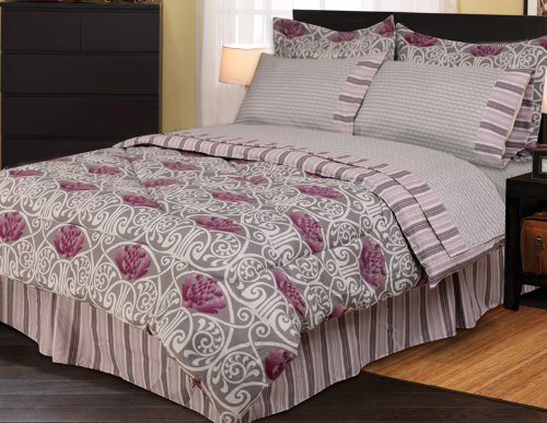 High Fashion Super Soft Complete Bedding Ensemble Includes Down Alternative Hypo Allergenic Poly Fill, one pillow case 20 by 30, one pillow sham 20 by 26+4, bed skirt 39 by 75+14.